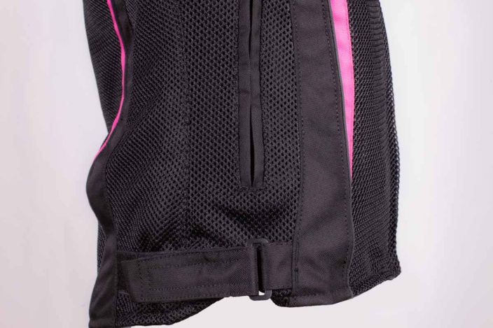 Women's motorcycle jacket with a removable thermal vest and large areas of durable mesh fabric, equipped with hard outer shoulder protectors and everything you need for hot summer days and cool evenings.