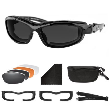 Take control of the road with this versatile eyewear that offers adaptability and interchangeability. Designed for use in any lighting conditions and environment, it comes with four sets of interchangeable polycarbonate lenses. With a detachable, adjustable strap, it easily converts from sunglasses to goggles for your convenience. Plus, two sets of removable foam inserts allow for 24 different configurations, ensuring a perfect fit for every situation. Complete with a carry case and microfiber cloth, this eyewear stays in top condition wherever your adventures take you.