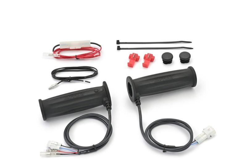 Premium heated grips with high-quality barrel-shaped Japanese design and combining function and comfort. Daytona heated grips provide unrivalled heating performance in cold conditions, the Quick Heating function taking just four minutes. An integral switch on the left-hand grip enables easy operation and temperature adjustment when riding between the 4-Levels of heating. Fully intelligent operation by heat level memory and recall function. Battery Protection function automatically turns heated grips off when vehicle input voltage is less than 12V. Only for use on 12V scooters and motorcycles.