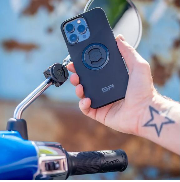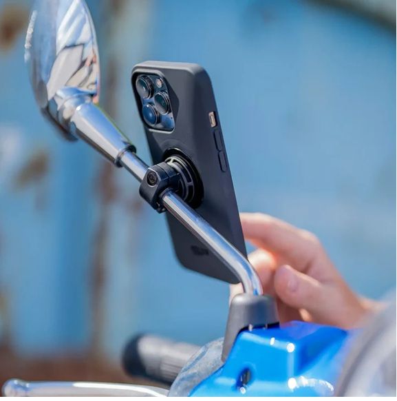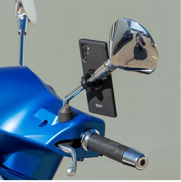 Независимо дали става въпрос за Vespa, Peugeot или други скутери, мотопеди и мотоциклети с тази стойка за огледало можете да добавите гъвкава и интуитивна възможност за фиксиране на вашия смартфон само за секунда.