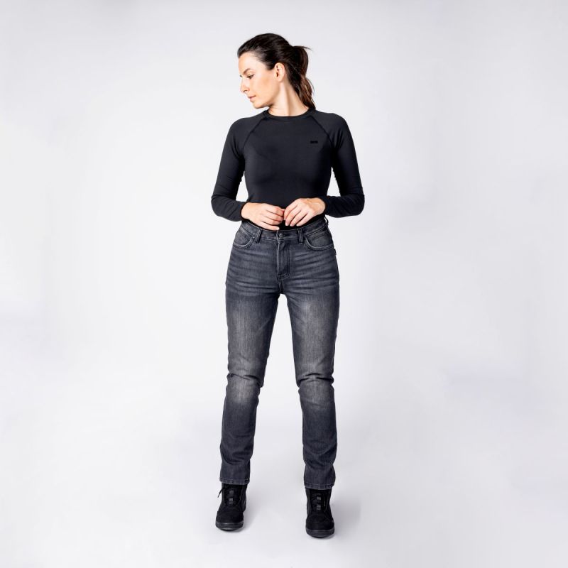 Weather-resistant, highly stretchy jeans that follow your every move, with a slim fit so you can swing your leg over the seat effortlessly. A button fly and five functional pockets for storing small items complete the lifestyle-approved design. Certified to EN17092-3:2020 (AA). Available in the following sizes (select below):