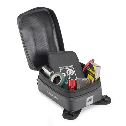 The AV09 K’RUGGED is a water-resistant tank bag made with heat-sealed materials and a thermo-taped inner liner, ideal for both touring and enduro riding.