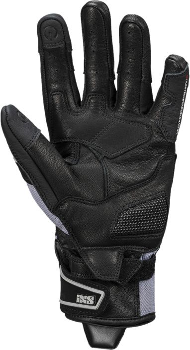 iXS Rapid-Air 1.0 са къси, силно вентилирани мотоциклетни ръкавици, предназначени за каране в топло време, изработени от комбинация от козя кожа и мрежеста материя. Проектирани за горещо време, ръкавиците разполагат с ултра-издръжлива мрежеста задна част и „Air-intake System“ върху кокалчетата за постоянна аерация и увеличен въздушен поток. Те предлагат значителна защита с двоен слой кожа на дланта, TPU протектори на кокалчетата с въздуховоди и ултра-издръжливо покритие SuperFabric® върху подплатената пета на дланта. Външната обвивка е комбинация от козя кожа и полиестерна мрежеста материя, с мека, бързо абсорбираща текстилна подплата. Ръкавиците са съвместими с тъчскрийн на палеца и показалеца и включват гумена чистачка за визьор на показалеца. Те са сертифицирани съгласно стандарта EN13594:2015.