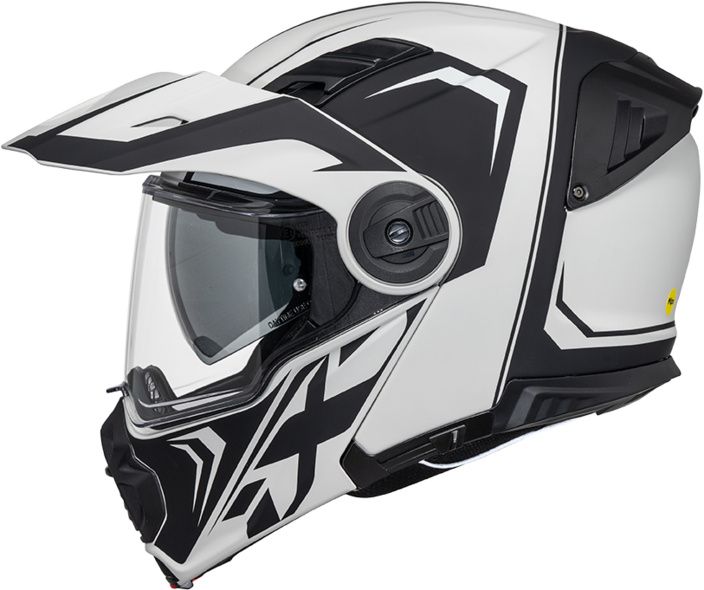 Каска в Adventure стил направена от мултикомпозитен материал, подсилен с армидни и карбонови нишки. Идеално съчетание на Flip Up, Jet и каска с козирка. Може да се ползва с и без козирката. 3D прозрачен визьор с голям панорамен ъгъл, интегриран вътрешен слънчев визьор и включен Pinlock® Max Vison визьор против изпотяване.