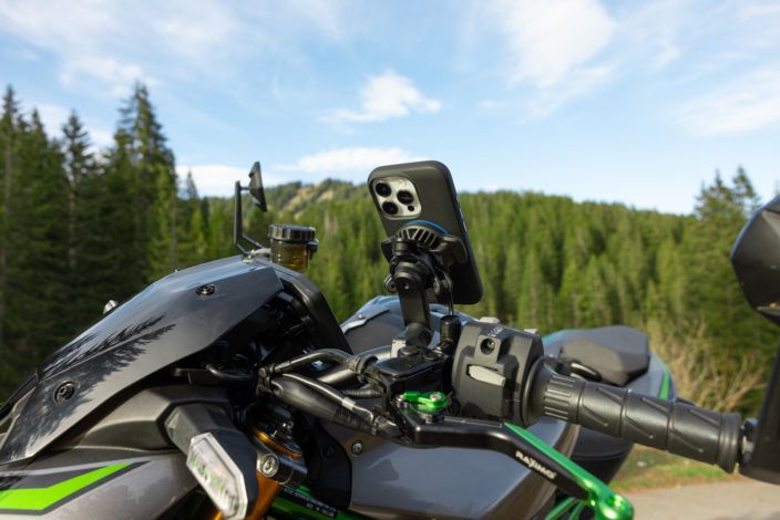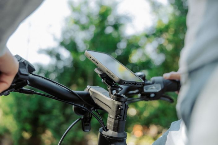 Сигурното двустепенно заключване със завъртене държи телефона ви безопасно монтиран на мотоциклета, независимо от терена, по който карате.