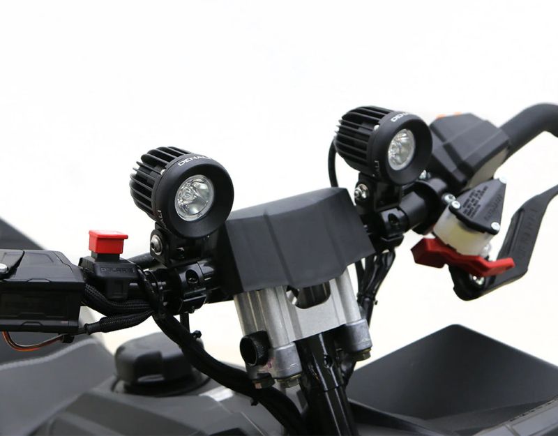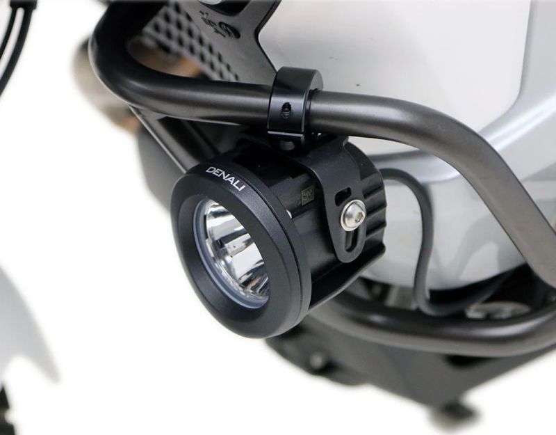 Този комплект за монтаж на допълнителни фарове DENALI позволява монтирането на всякакви LED светлини към ролбарите на двигателя, тръбите на рамката или всяка тръба с диаметър 21 -29 мм (0,826 инча-1,125 инча). Тези стойки за светлини имат уникален осмоъгълен вътрешен профил, който позволява на скобите здраво да захващат широк диапазон от и включват опционален, напълно въртяща се монтажна планка, за да се създаде супер универсално и здраво решение за монтаж на светлини. Скобите позволяват светлините да бъдат позиционирани от вътрешната страна на ролбарите, което гарантира, че ще бъдат защитени при инцидент.