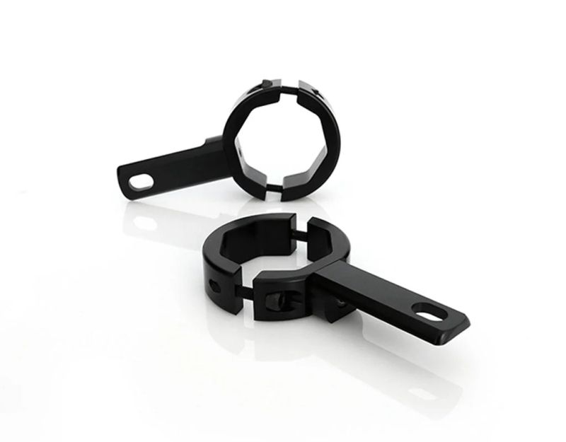 Този комплект за монтаж на фарове DENALI позволява монтаж на всеки комплект DENALI LED фарове към тръбите на предната вилката на мотоциклети или към всяка тръба с диаметър 39 мм - 49 мм (1,6-1,875 инча). Тези стойки за светлини имат уникален осмоъгълен вътрешен профил, който позволява на скобите здраво да захващат широк диапазон от и включват опционален, напълно въртяща се монтажна планка, за да се създаде супер универсално и здраво решение за монтаж на светлини.